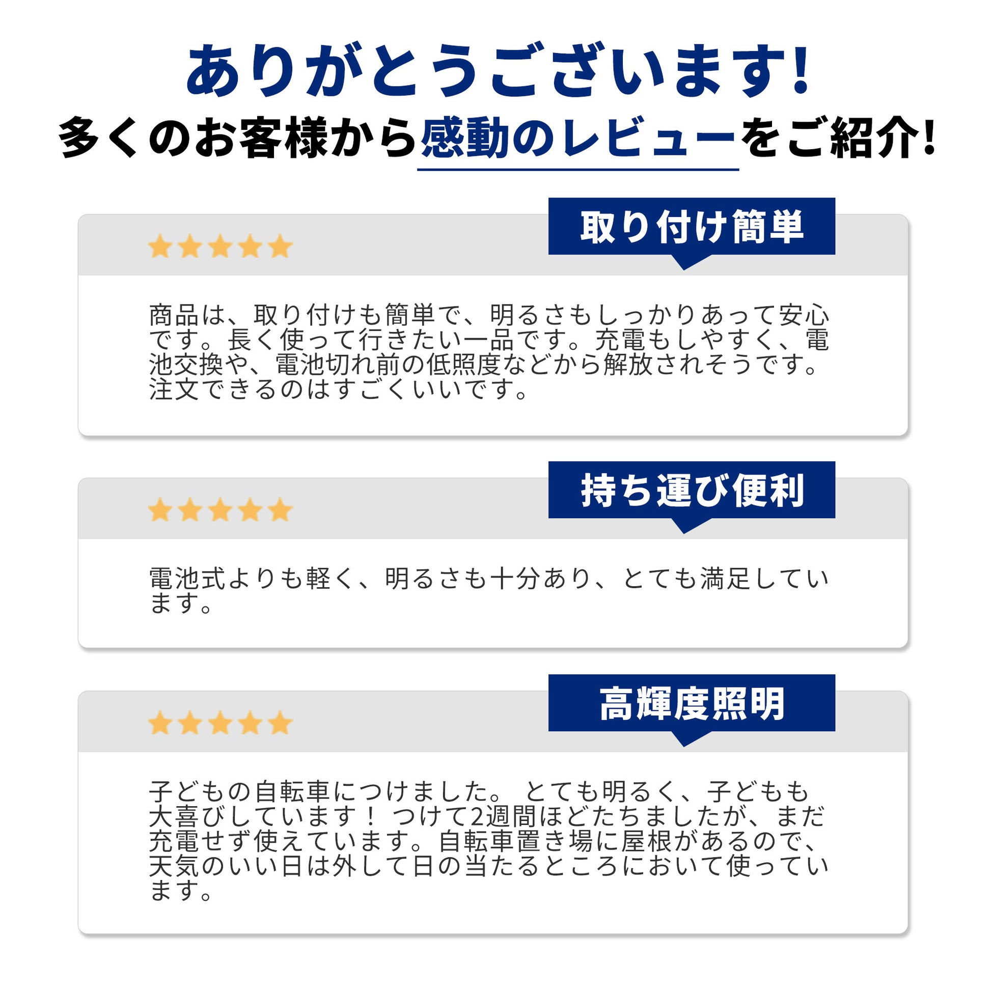 ● 【多用途】自転車のフロントライトとしてだけでなく、懐中電灯としても便利に使えます。 キャンプや登山、アウトドア活動、停電対策、防災など、さまざまなシーンで役立ちます。